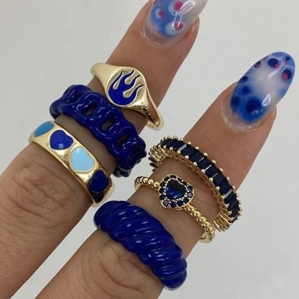 Nevi Blue Chunky Ring Set